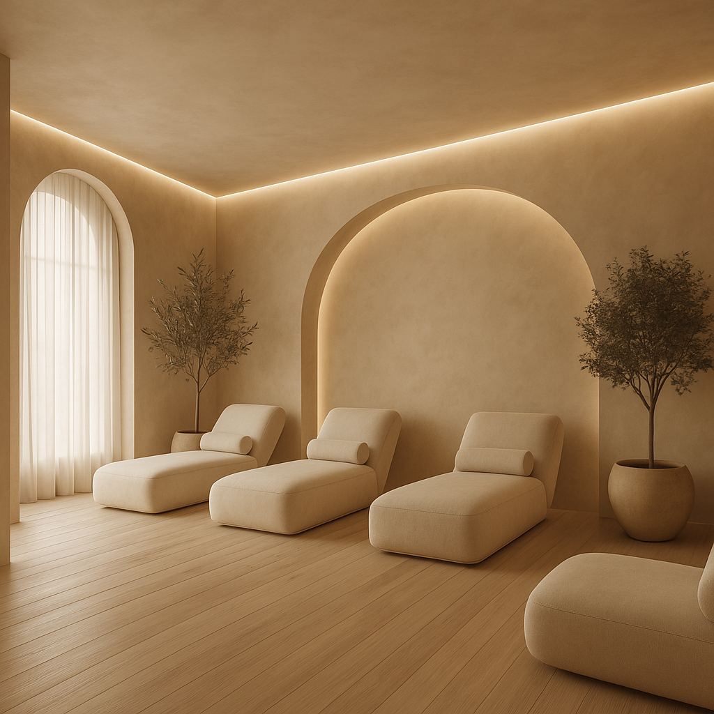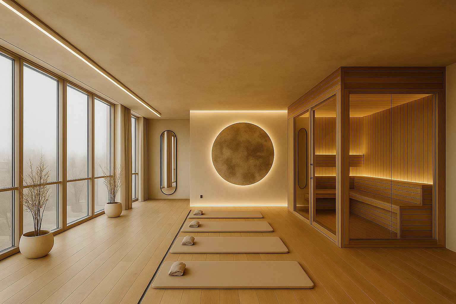 Design Focus: Wellness Architecture, Interior Design, Sauna Integration, Mindful Minimalism Materials: Natural wood, glass, warm LED lighting, textured plaster Mood: Tranquil, restorative, refined